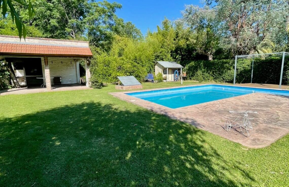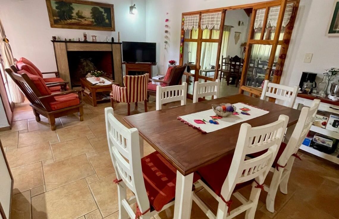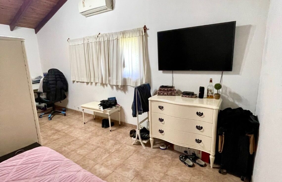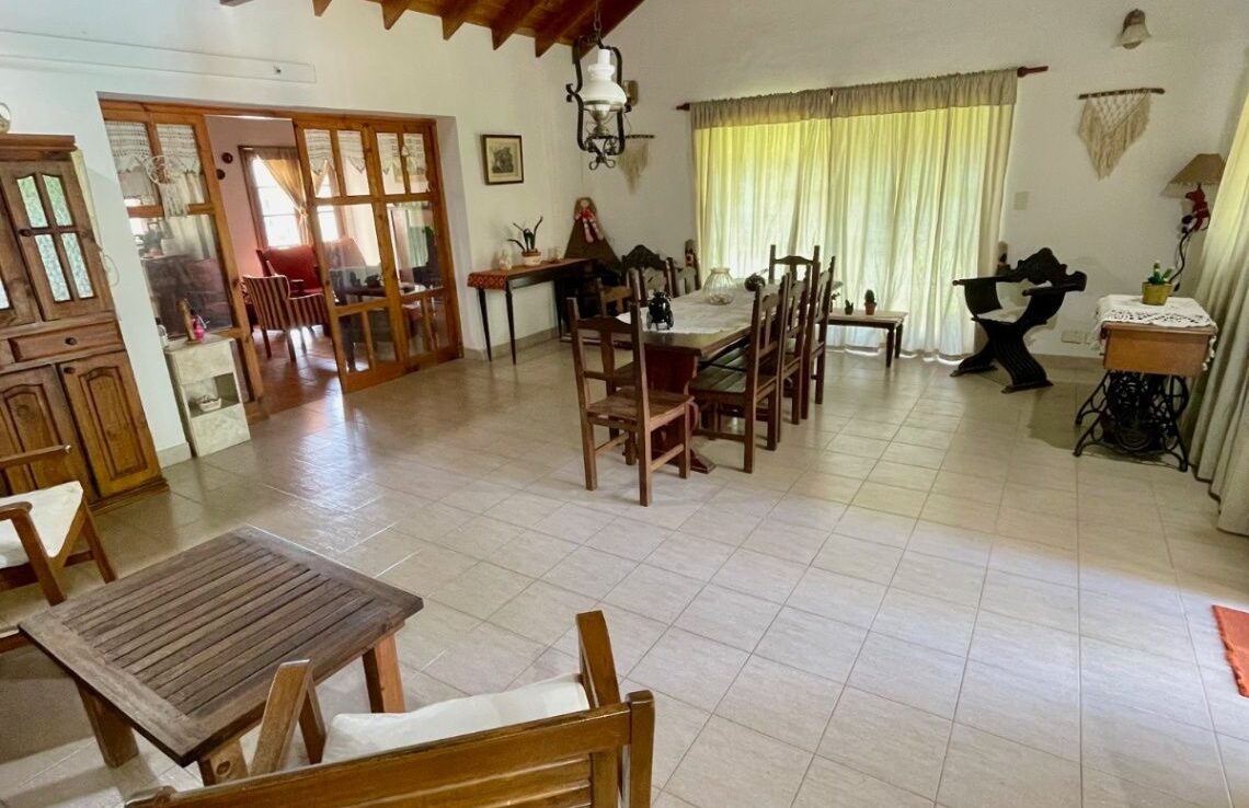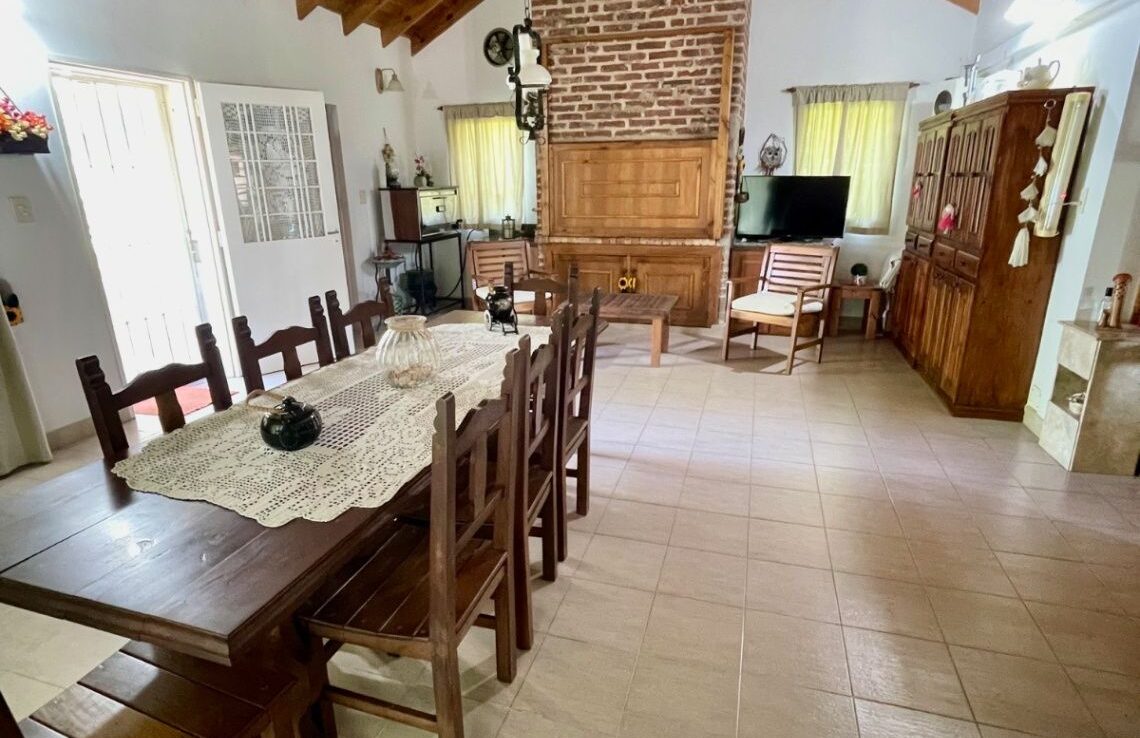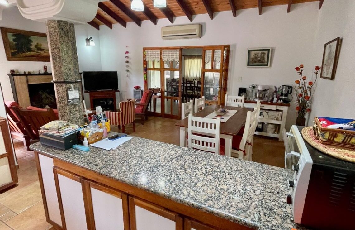 Exterior en optimas condiciones con piscina (4X9Mts con filtro y bomba) que invita a relajarse y disfrutar de los días soleados. Entre sus características adicionales se destacan el gas natural, cocina muy bien equipada (mesada, bajo mesada, alacenas, artefacto, barra desayunadora), galería de invierno (5x7Mts) con parrilla y lavadero cubierto, living comedor con hogar a leña y aire acondicionado, galería semi cubierta con parrilla, sala de juegos, portón automático, toilette. Con una antigüedad de 15 años aprox, esta casa ha sido cuidadosamente mantenida y está lista para escriturar.